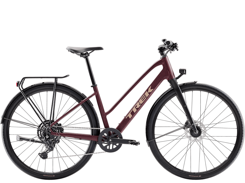 The FX Sport AL Equipped Midstep is a capable go-anywhere hybrid bike that's fun to ride on a variety of surfaces. It has a lightweight midstep frame, a sturdy drivetrain and loads of ride-ready accessories like a rear rack and lights. Its wide wheels and tyres soak up bumps and rough-terrain for a comfortable, confident ride on the road, light gravel trails, bike paths and more.