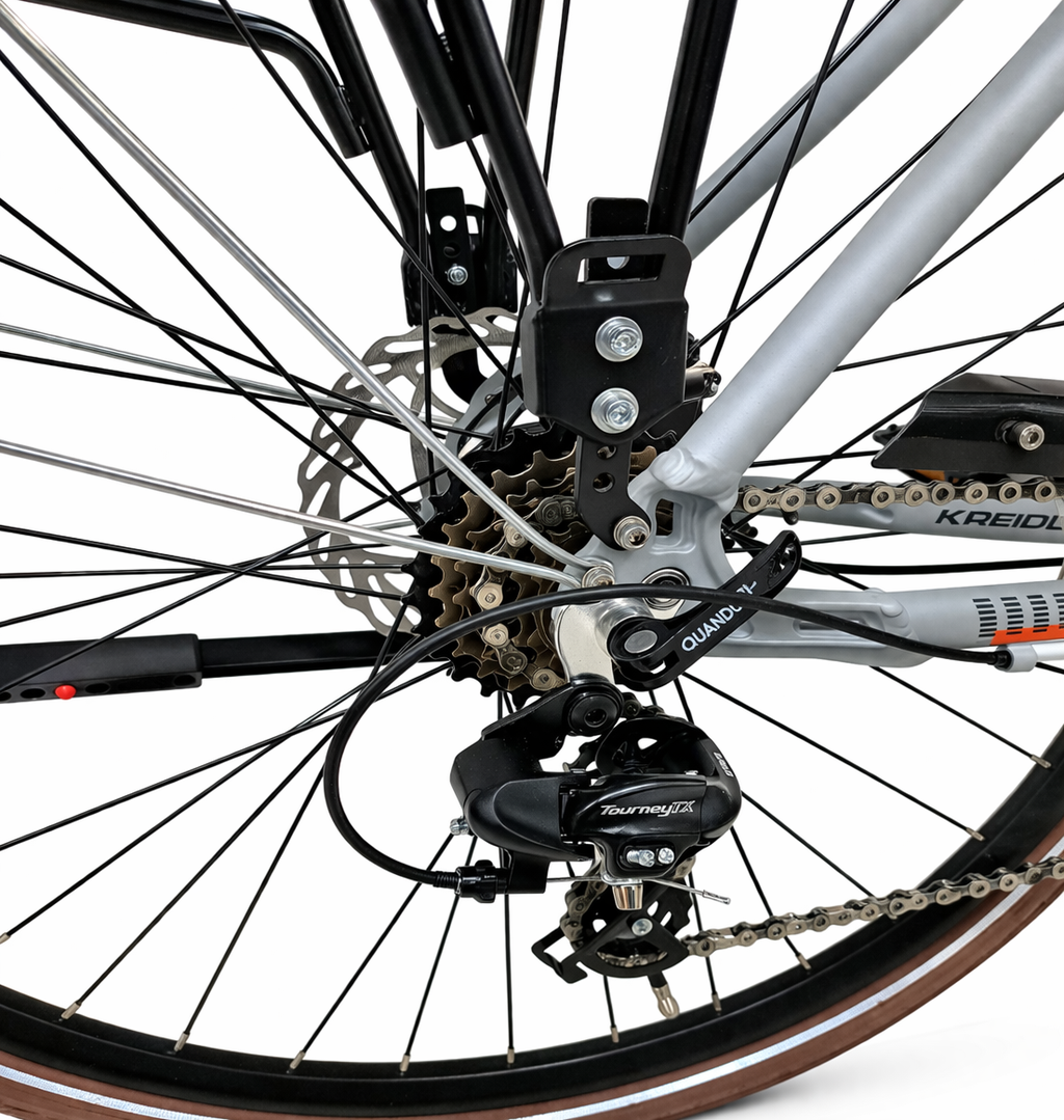 Bicicleta trekking Kreidler 52856 este partenerul perfect pentru cei care isi doresc o bicicleta confortabila, bine echipata si usor de folosit zi de zi. Fie ca mergi la serviciu sau iesi la plimbare, acest model iti ofera siguranta, stabilitate si placerea de a pedala in orice moment.