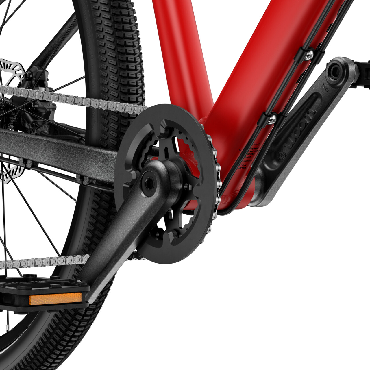 Cadrul ușor din aluminiu reprezintă inima bicicletei. Datorită geometriei concepute special pentru juniori de către echipa de design woom, orice copil va iubi mersul pe două roți.
