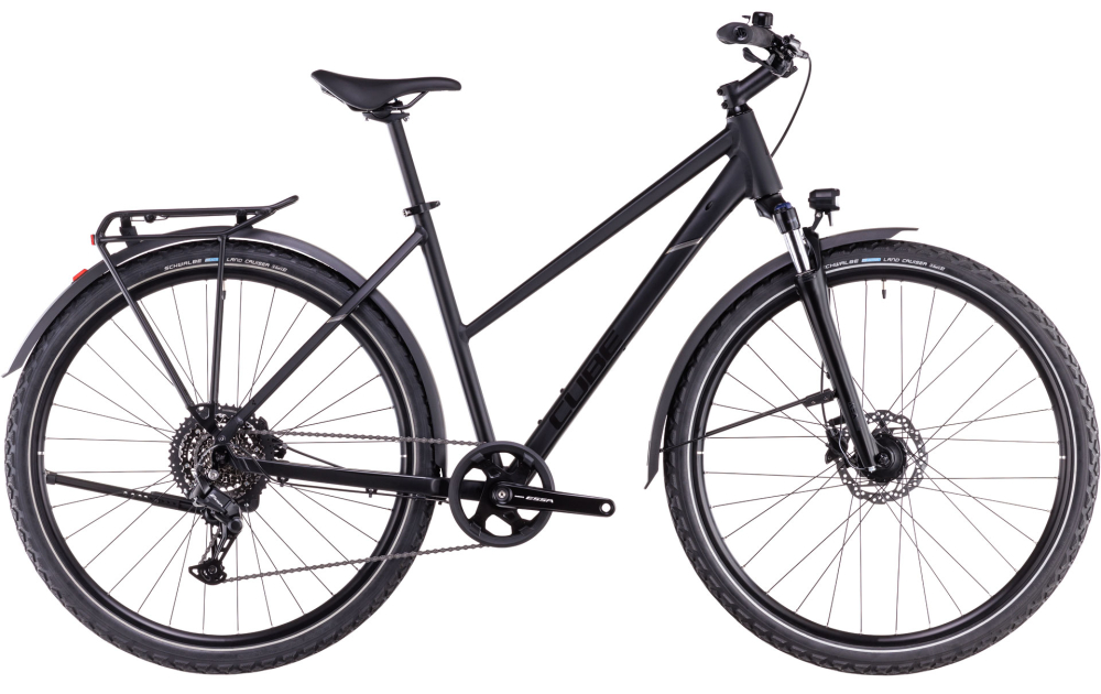 Bicicleta CUBE NATURE ONE ALLROAD TRAPEZE BLACK BLACK combina confortul si versatilitatea seriei noastre Nature cu practicitatea unui set complet de accesorii. Echipata cu aparatori de noroi pe toata lungimea, un portbagaj robust, un cric si un sistem de iluminare alimentat de dinam, aceasta este bicicleta perfecta pentru orice, de la jungla urbana la excursii in natura. Furca cu suspensie confortabila de la Suntour, schimbatorul de viteze Shimano Essa 1x8 usor de utilizat si franele hidraulice puternice asigura o calatorie sigura si confortabila.