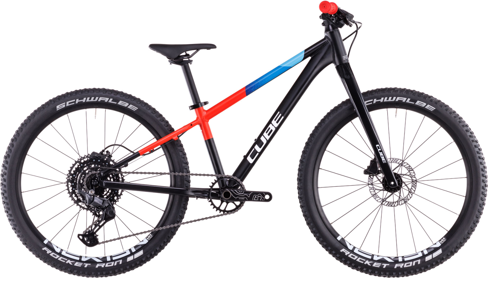 Ghidonul si punctele de contact sunt special concepute pentru dimensiunile juniorilor, asigurandu-le confortul si controlul complet. Anvelopele Schwalbe Rocket Ron Kevlar garanteaza aderenta maxima, astfel incat tinerii biciclisti sa se poata bucura de fiecare aventura.