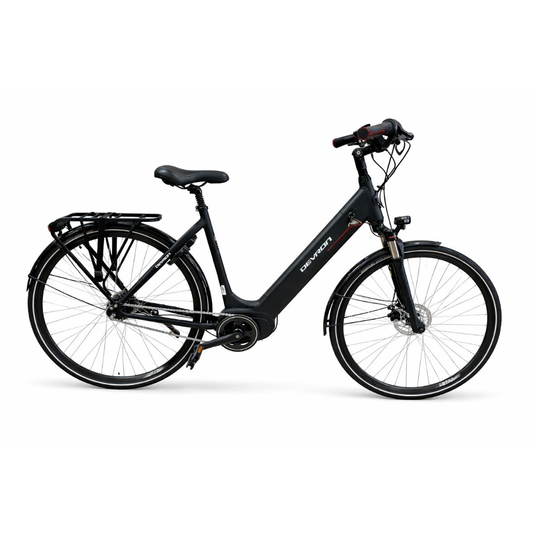 Bicicleta Electrica Devron 28426 - 28 Inch Devron 28426 este o bicicleta electrica de oras conceputa pentru deplasari confortabile si eficiente in mediul urban. Cu motor central Bafang, autonomie generoasa si echipare moderna, acest model combina tehnologia electrica cu confortul specific bicicletelor city, oferind o experienta placuta la fiecare deplasare. De ce sa alegi Devron 28426? Asistenta electrica puternica: Motorul central Bafang MaxDrive ofera un cuplu ridicat pentru accelerare lina si urcari fara efort. Autonomie practica: Distanta de pana la aproximativ 60 km permite deplasari zilnice fara griji. Confort urban: Furca cu suspensie SR Suntour si tija de sa cu amortizare absorb denivelarile drumului. Schimbare usoara a vitezelor: Transmisia Shimano Nexus cu 7 viteze integrate ofera schimbari fluide si fiabile. Control si siguranta: Sistemul de franare eficient asigura opriri precise in trafic.Beneficii cheie: Rulare confortabila: Roti de 28 inch si anvelope Schwalbe pentru stabilitate si aderenta pe asfalt. Control intuitiv: Display-ul LCD Bafang ofera informatii rapide despre nivelul asistentei si parametrii de rulare. Pozitie ergonomica: Ghidonul city si pipa reglabila permit ajustarea pozitiei pentru confort maxim. Fiabilitate ridicata: Componentele Shimano si KMC asigura durabilitate si functionare eficienta. Capacitate mare de incarcare: Greutate maxima suportata de pana la 130 kg. Caracteristici principale: Dimensiune roata: 28 inch, ideala pentru deplasari rapide si eficiente in oras. Material cadru: Aluminiu, usor si rezistent pentru utilizare zilnica. Motor: Bafang MaxDrive, 250W, cuplu 85 Nm pentru asistenta electrica eficienta. Autonomie: Pana la aproximativ 60 km in functie de stilul de pedalat si conditii. Transmisie: 1 x 7 viteze cu Shimano Nexus pentru schimbari fluide si intretinere redusa. Furca: SR Suntour cu cursa de 63 mm pentru confort sporit pe drumuri urbane. Viteza maxima asistata: 25 km/h conform standardelor pentru biciclete electrice. Devron 28426 este bicicleta electrica ideala pentru naveta zilnica sau plimbari relaxante prin oras. Cu asistenta electrica eficienta, componente de calitate si un nivel ridicat de confort, acest model transforma fiecare deplasare intr-o experienta usoara si placuta.