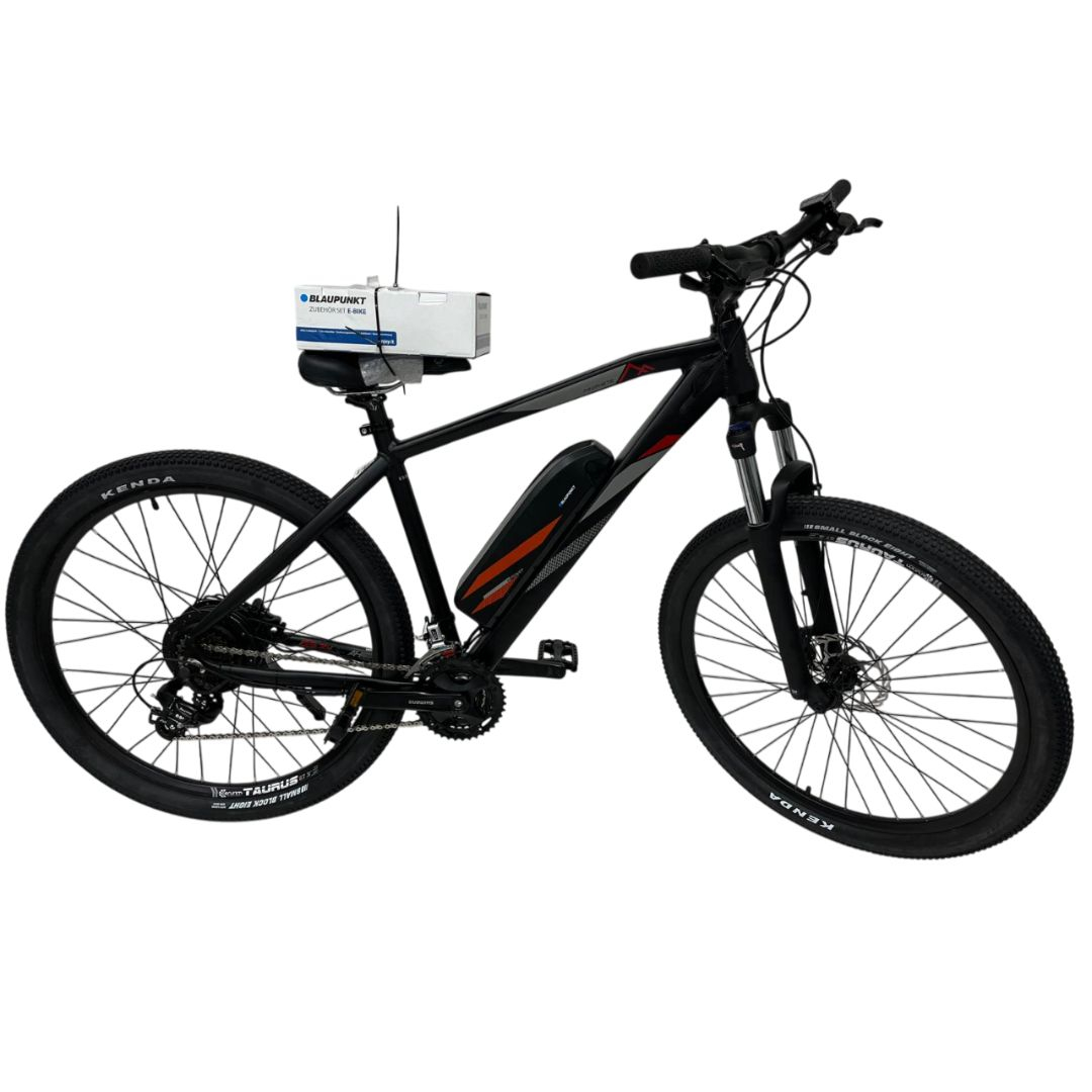 Performanta off-road: motor spate Blaupunkt pentru asistare constanta si putere echilibrata Confort superior: furca cu cursa 100 mm si ghidon ergonomic Promax HB-3188 de 640 mm Rulare sigura: anvelope Kenda K1047 27.5x2.1” cu aderenta excelenta pe teren mixt Fiabilitate ridicata: componente Shimano si jante duble din aluminiu 36H Greutate suportata: pana la 120 kg – potrivita pentru utilizare zilnica si ture lungi