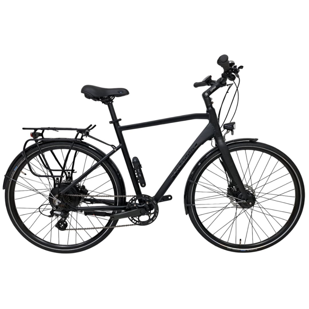 Confort urban: ghidon de 600 mm cu mansoane ergonomice Ergo black 130+130 mm Rulare sigura: anvelope Schwalbe Citizen 37-622 K-Guard Reflex pentru aderenta buna si protectie anti-pana Greutate suportata: pana la 120 kg – ideala pentru utilizare zilnica Viteza maxima asistata: 25 km/h, conform reglementarilor pentru e-bike Design practic: finisaj mat negru, aspect elegant si echipare completa