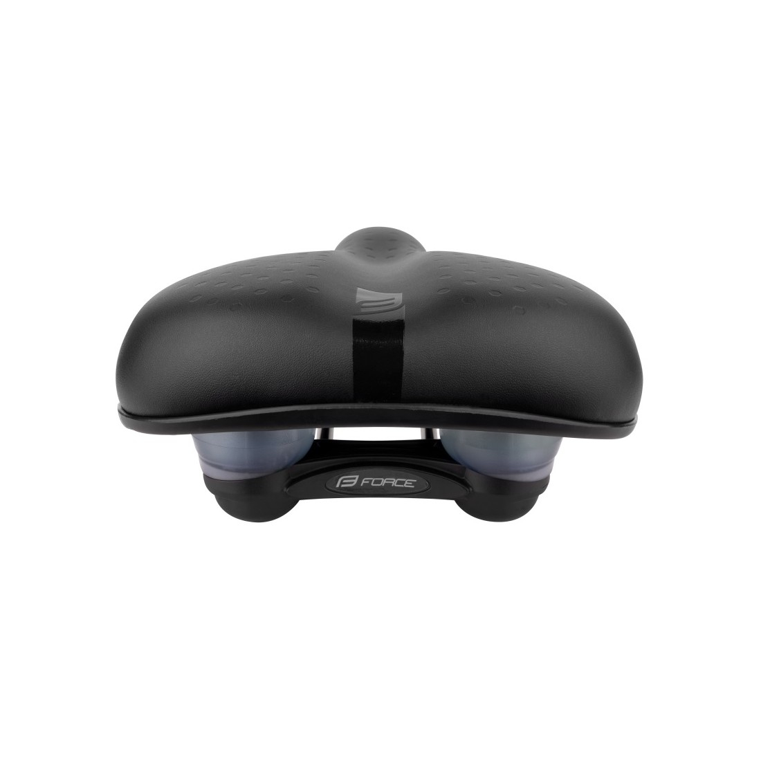 Sa cu suspensie pe elastomer logo FORCE imprimat NU include colier de prindere pentru tija de șa platformă șa: nylon șine din oțel cu marcaj material: PU – poliuretan dimensiuni: 240 x 210 mm greutate: 535 g ambalată pe carton FORCE