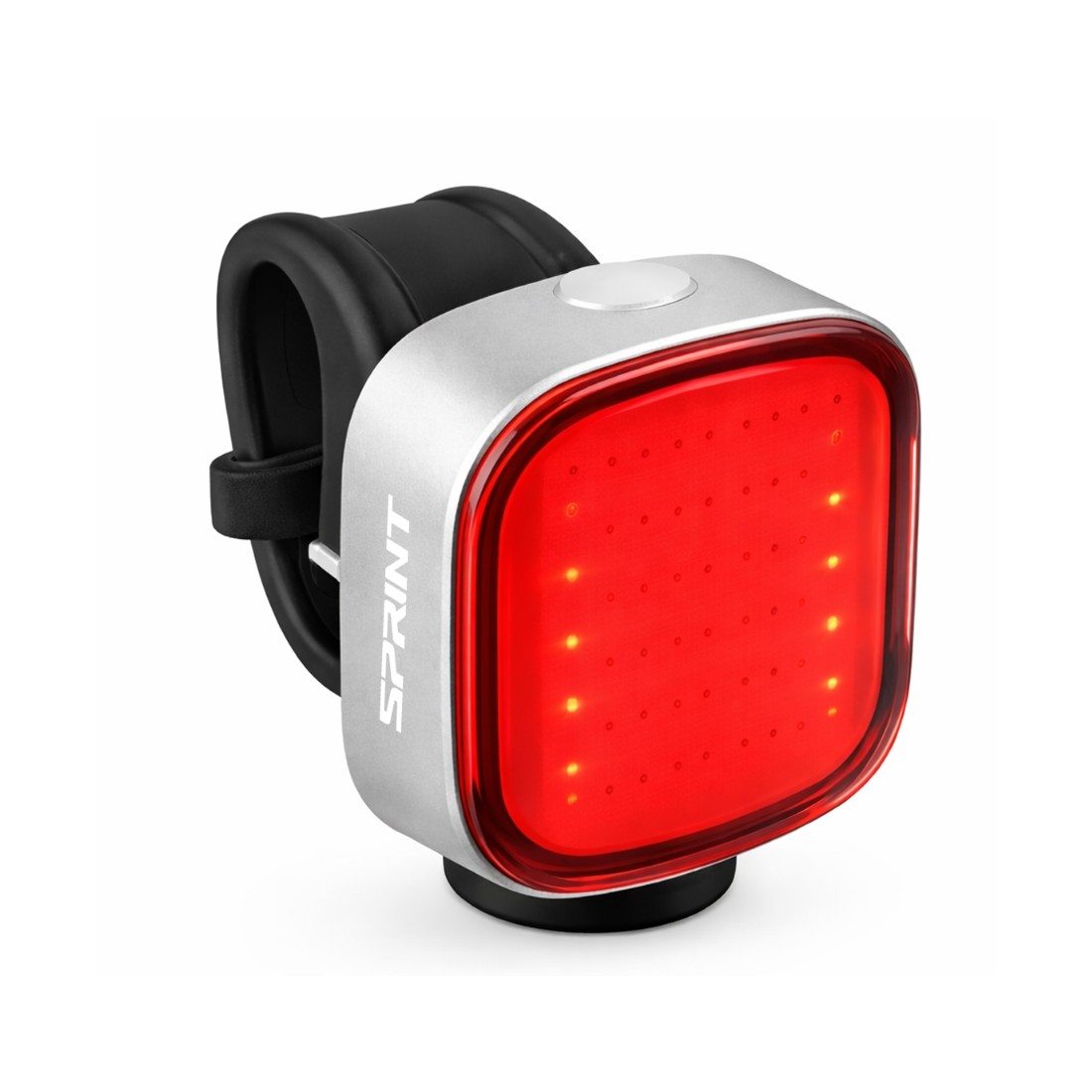 Lumină spate reîncărcabilă pentru bicicletă - 36 LED-uri roșii ultra-strălucitoare Specificații tehnice: LED-uri: 36 cipuri LED roșii de înaltă luminozitate Baterie: Li-polimer 3.7V / 300 mAh Timp de încărcare: aprox. 3 ore Încărcare prin cablu Micro-USB (inclus) Moduri de funcționare: 70% luminozitate 100% luminozitate Mod intermitent (Flash) Mod Breath Flash Operare: Apăsare scurtă: schimbarea modurilor Apăsare lungă: oprirea luminii Funcții suplimentare: Indicator pentru baterie scăzută Include cablu Micro-USB Construcție compactă, ușor de montat